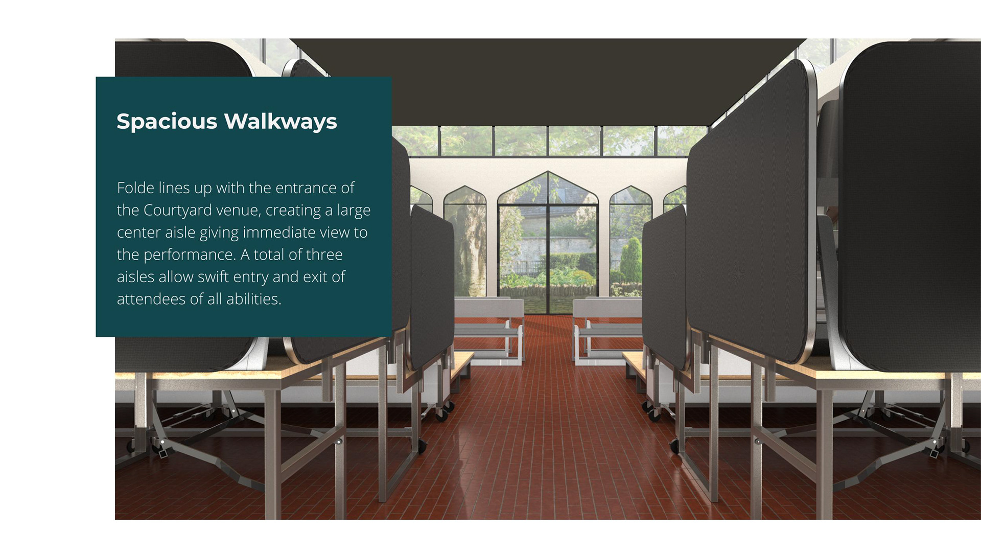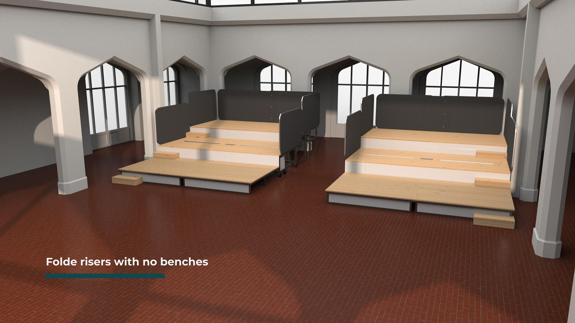 The Folde Bench is designed to work seamlessly with the risers as a system, however, they are fully independent units that can be used separately from the risers, indoors and out, granting flexibility to dynamic venues. The bench seats 3 across with an